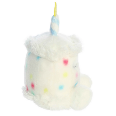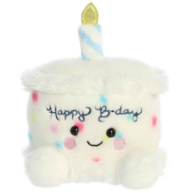Whenever there's a birthday, B-Day Cake has got it covered. It keeps a very detailed list of every Palm Pals likes and dislikes, so the perfect gift can be given when their brithday comes around. No party is complete without Happy B-Day Cake being on the guest list! Happy B-Day Cake is a plush toy that resembles a piece of birthday cake. It's predominantly white with colorful sprinkles, a smiling face, and rosy cheeks. A candle on top, with a golden flame, adds a festive touch to its design, making it perfect for celebrating birthdays. I like to see how many different variations of the birthday song I can come up with, I try to make one for every one of my pals! I gotta be in the hundreds by now!