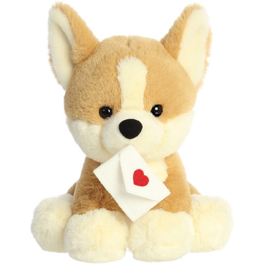 Sealed with a Kiss Corgi has a romantic gift just for you this Valentine's season. This Corgi is a light tan and cream colored all through out with a heartwarming plush letter in its mouth. Sealed with an adorable heart, this love note will set your heart flying with cuteness!