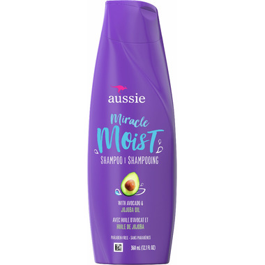 END YOUR DRY SPELL. Aussie Miracle Moist Shampoo soaks your strands in mega-hydration. Infused with avocado and jojoba seed oil, this fabulously rich shampoo transforms dry, thirsty hair with out-of-this-world hydration while leaving you with the delightfully fun scent of luscious citrus.