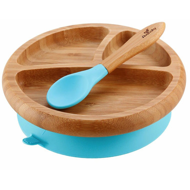 Avanchy Baby Bamboo Stay Put Suction Divided Plate & Spoon Blue