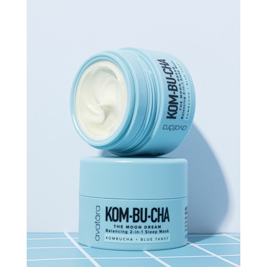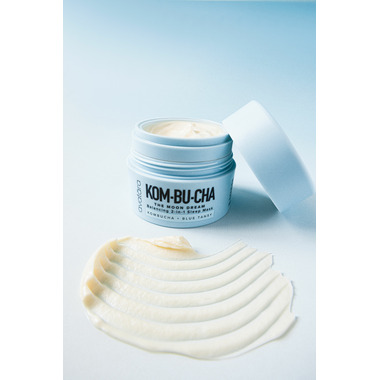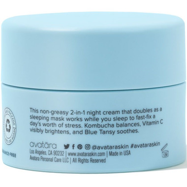 This non-greasy 2-in-1 night cream that doubles as a sleeping mask works while you sleep to fast-fix a days worth of stress. Kombucha balances, Vitamin C visibly brightens, and Blue Tansy soothes.