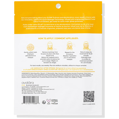 Directions: 1. (AM or PM) Start with clean, dry skin. 2. Gently unfold mask and apply Hydrogel-side down onto face. 3. Remove backings, adjust mask to fit & repeat with 2nd piece. 4. Relax and remove after 10-20 minutes. For best results, use at least 1x per week.