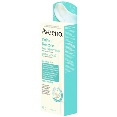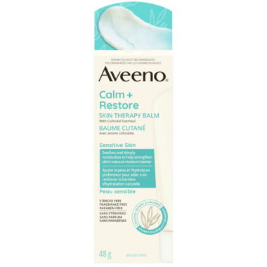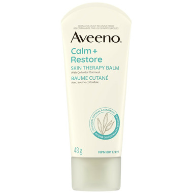 Calm and restore skin's moisture barrier for healthy-looking skin with Aveeno Calm + Restore Skin Therapy Balm. Made with a Triple Oat formula that includes oat extract, colloidal oatmeal, oat oil, and ceramides. Ideal for protecting dry, sensitive skin while soothing and deeply moisturizing. Soothing balm also temporarily protects and relieves minor skin irritations due to rashes and eczema.