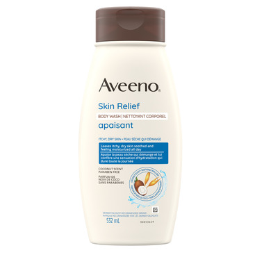 • 532-millilitre bottle of Aveeno Skin Relief Body Wash with a gentle coconut scent designed for sensitive skin. Formulated with a Triple Oat formula leaves itchy, dry skin soothed and feeling moisturized.