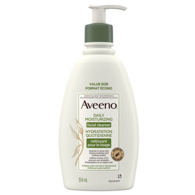 Aveeno Daily Moisturizing Facial Cleanser cleanses and hydrates your skin in one step. This daily facial cleanser with soothing food-grade oat leaves dry skin feeling soft and supple. This easy-to-rinse cleanser gently removes dirt, oil, and impurities to leave skin feeling hydrated. To use, wet skin with lukewarm water and massage the cleanser into skin in a gentle, circular motion and then rinse. The soothing daily facial cleanser from Aveeno has a biodegradable formula that is formulated without fragrance, parabens, sulfates, dyes, and soap-free. Aveeno has been a dermatologist-recommended brand for over 65 years. Aveeno Daily Moisturizing Facial Cleanser contains pure, non-GMO*, food-grade oat. *Aveeno uses a trusted supplier who sources the non-GMO oat in a purposeful way to help preserve the purity of the oat. Aveeno Daily Moisturizing Facial Cleanser is designed to leave skin feeling fresh and hydrated. This product comes with a 354-millilitre bottle of Aveeno Daily Moisturizing Facial Cleanser for clean, soft skin.
