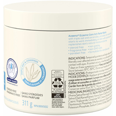 • Get instant, every day and long lasting itch relief from eczema with the soothing Aveeno Eczema Care Itch Relief Balm. This non-greasy, fragrance free balm comes in a 311 gram jar. May also be used for itching due to rashes.