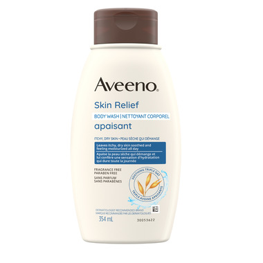 - 354-millilitre bottle of Aveeno Skin Relief Fragrance-Free Body Wash designed for dry and sensitive skin with a Triple Oat formula leaves itchy, dry skin feeling soothed and moisturized