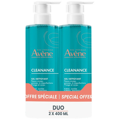 The perfect hygiene duo at a special price: Cleanance Cleansing gel (2x400ml): Daily cleansing of sensitive oily, blemish-prone or acne-prone skin, Gently purifies and reduces excess sebum, lastingly decreases shine and eliminates skin impurities.