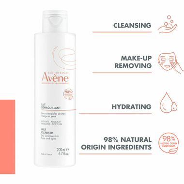 Directions: Apply the gentle Milk cleanser, using your fingertips or a cotton pad, to your face and neck. Perfect makeup removal with the Gentle toning lotion or the Avene thermal spring water spray.