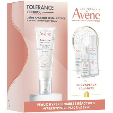Receive the Tolerance Control Soothing skin recovery cream 40ml, but also the Tolrance Extremely gentle cleanser 100ml, the travel size of the Thermal spring water 50ml (FREE) and Cicalfate+ Restorative protective cream 2ml (FREE) in this generous gift set for THE perfect hypersensitive reactive skin routine!