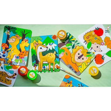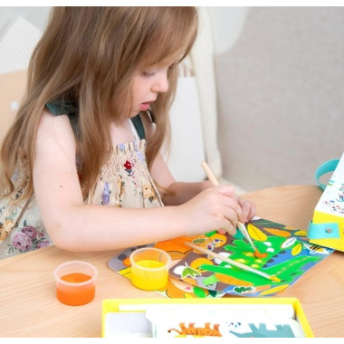 This gel painting kit lets kids create vibrant animal-themed art with spill-proof, washable paints that wont drip for mess-free fun. The set includes 4 gel paints, 2 brushes, 10 painting cards, and 68 removable stickers, making it easy for children to explore their creativity.