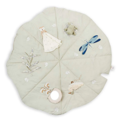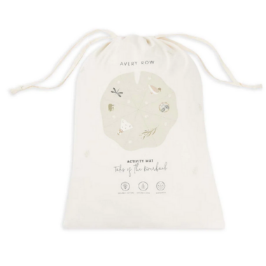 Avery Row's Lilypad shaped activity mat features all our favourite friends from the Riverbank Collection. With sensory elements such as a mirror, frog toy, crinkly leaves and a squeaky fluffy duck, this activity mat is designed with playing at home in mind. Made from 100% organic cotton and recycled polyester filling, this mat will entertain your little ones and fit perfectly into your home. Comes with a drawstring canvas bag for easy storage.