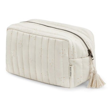 This Avery Row organic cotton quilted wash bag comes in their unique prints with a stylish tassel. A beautifully designed, practical pouch for parent or baby to store your toiletries, make up, and more or nappies and creams. It also has a handy elasticized pocket inside. The product that is for parent and baby and has an infinite number of uses.