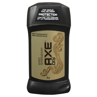 AXE Dry Gold Temptation Anti-Perspirant Invisible Solid has a fresh scent that opens with green citrus fruity notes delicately mixed with a spicy sparkling accord. This fresh start is followed by sugary and appetizing molten chocolate notes and hints of masculine amber. This anti-perspirant features effective 24hr odour and wetness protection.