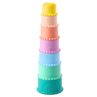 Build and stack then squeeze and pour with the Stackin Squishies set from B. Toys! This soft and sensory 17-piece playset is packed with gentle colors and playtime milestones for babies. The textured blocks feature designs with numbers, shapes, and cute animals thats 60 sides of sensory fun! And the squishy stacking cups are ready for fun in the nursery or in the bath, thanks to lil holes that make them drippy cups. Each one even has a delightful illustration parents can use to help little ones start learning new words, and the cups! Not only will children love building with the blocks and stacking the cups, they're also safe for lil nibbles and let kids experiment with cause-and-effect, and develop their hand-eye coordination.