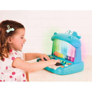 A place sprinkled with musical adventures and endless possibilities. 8 popping birdies & musical light show! Pressing piano keys makes birds pop! 5 sounds modes 15 fun songs 6 play along nursery rhymes 26 wacky sounds High/Low octaves.