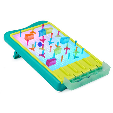 Engineer a creative path and turn what-ifs into art with the Light-Up Marble Drop from B. toys! With 180 pieces and an illuminated pegboard, this toy equips kids to design and create their own fun—an illuminating concept! Little engineers can tinker with the pegs, slopes, and spinners to build exciting runs for marbles to plink and plonk their way down. They can even puzzle their way to the high score with the points tray by testing different routes down their creations! Then turn down the lights and make the next run a disco one thanks to the light-up pegboard. That’s right, it changes colors at the click of a button! The Light-Up Marble Drop also comes with 4 template sheets to help kids create beautiful color-changing peg art—they can even show it off with a lil’ help from the kickstand! And of course kids are free to create whatever they please as many time as they like because the light-up canvas never gets used up. This hands-on marble run and art board is great for encouraging kids to exercise their problem-solving skills, improving fine motor skills, and promoting creativity. It’s not just hands-on play; it’s training for future engineers and artists! Batteries (4xAA) are required and included. Recommended for kids 4 years and over.