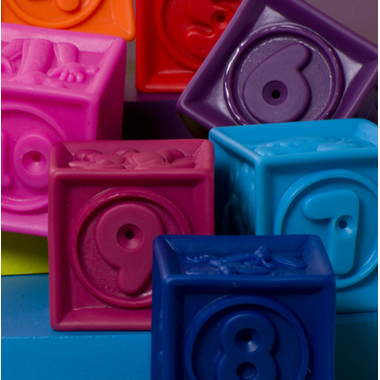 B. One Two Squeeze Blocks include ten blocks hand sculpted on every side. Stackable, Squeezable, floatable, squeakable, chewable.
