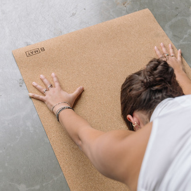 Your B Yoga B MAT cork offers 100% natural cork top surface with a 100% natural rubber reverse. A great eco-yoga mat option offering superior grip when damp. Quick drying and 4mm thick, this cork option is an elevated take on the traditional yoga mat.