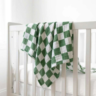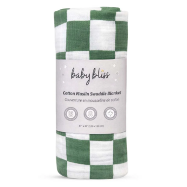 Baby Bliss Muslin Swaddle Blanket Sage Checker