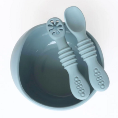 Baby Bliss Suction Bowl & Training Spoons Dusty Teal