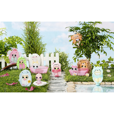 Unwrap 8+ surprises and find a pet for you to adopt and love when you unbox BABY born® Surprise Pets. Each Pet comes wrapped in a soft towel package. Unwrap it to find a real bathtub and your adorable, sleepy-eyed pet in a sweet, soft swaddle. Wipe your pet's sleepy eyes to reveal their eye color, and your pet's pacifier color tells you whether your pet is a boy or a girl. Unwrap your pet from its swaddle to reveal which animal you got. Will you find a puppy or a kitty? Or maybe a pony or a birdie? Give your pet a bath in ice cold water for an incredible color change surprise – the entire pet changes color to either a new color and outfit or even into a totally new pet. Use the included keychain clip to take your pet in its swaddle on-the-go! Each Baby born® Surprise Pet also includes a soft towel and an adorable bathtub you can use to bathe your pet. Collect all 18 unique combinations of soft swaddles and adorable pets.