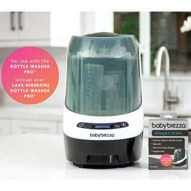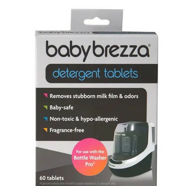 Exclusively made for the Baby Brezza Bottle Washer Pro, the detergent tablets remove stubborn milk residue and odour. The safe and powerful cleaning formulas are non-toxic, hypo-allergenic and fragrance-free. Detergent Tablets for Bottle Washer Pro - safe and powerful cleaning for your baby's bottles, pump parts & accessories.