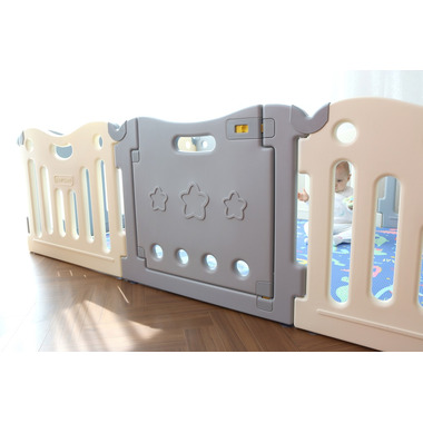 Baby Care's playpens are tested to be completely free from any harmful materials by most strict authorities. Moreover, their curved edges and double-lock door ensure further safety for your baby. Secure & Non-Slip Not like other playpens easily be pushed and moves around, our playpen stably keeps its shape and position thanks to its strong non-slip pads and place holders. Easy to Assemble and Extra Large Each panels can be assembly easily under 5 minutes. Provide extra large space for your baby with 10 panels.