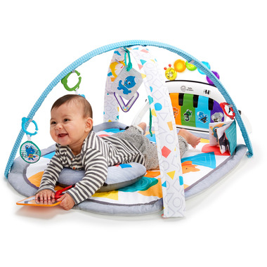 Orchestrate the perfect playtime for baby with the 4-in-1 Kickin' Tunes™ Music and Language Discovery Gym. Your baby’s musical genius will stretch from their head to their toes when it comes to this play gym. Thanks to Magic Touch technology, baby can play the piano with just a press of a finger or the kick of a foot! The included prop pillow helps make tummy time a more comfortable and enjoyable experience while your baby takes in the world. Using all senses, baby will explore 7 interesting toys, 70+ melodies & sounds, and 4 languages (English, Spanish, French, and German). The entertainment is nearly endless with discoveries in all directions – including a crinkle medallion, triangle rattle, textured music note, flash cards and self-discovery mirror. This multi-sensory gym is made to grow with your baby’s development. From tummy time to sit and play, Baby Einstein is sure to inspire your baby’s curiosity.