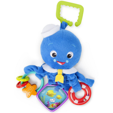 An armful of activities to keep baby entertained and engaged, at home or on-the-go. The Baby Einstein™ Activity Arms Octopus™ is a soft, plush friend with activities that entertain and engage. There's a ring rattle and starfish bead chaser, a flashcard with real-world imagery and a baby-safe mirror. Multiple activities encourage discovery and multi-sensory stimulation.