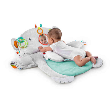 The propped up paws features a baby safe mirror to engage baby and encourage head movements from left to right. Made to fit well in small spaces, you can bring this mat along when traveling for creature comforts wherever you are . Care instructions: Mat is machine washable, Wipe clean with damp cloth and mild soap. Do not immerse in water.