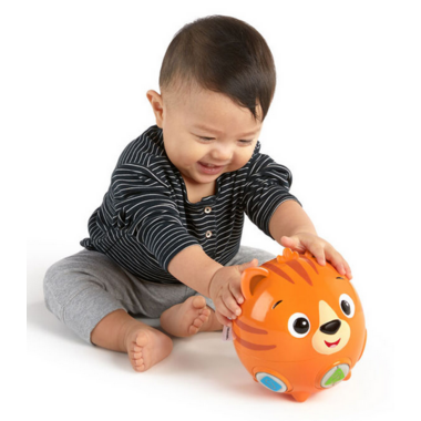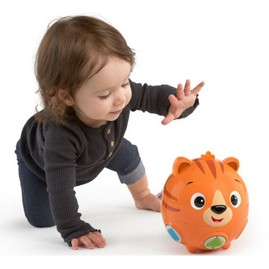 Develop gross motor skills and discover language with the help of this tumbling tiger toy! Tinkers Crawl Along Songsҙ Tummy-Time Toy from Baby Einstein scoots and wobbles to encourage baby to crawl and chase. Tap the buttons to hear shapes, numbers and colors or play music. With 65+ sounds. including 12 melodies and 3 languages, there's so much to discover with every crawl!