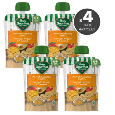 x4 Baby Gourmet Mango Avocado and Oats Organic Baby Food (128mL): Baby Gourmet Mango Avocado and Oats is ready made organic baby food.