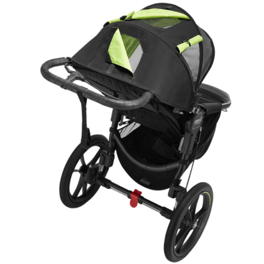 All-wheel suspension and a unique, hand-operated deceleration brake offer increased control and added safety as you hit the pavement. The Summit X3 sports a padded near-flat reclining seat and a vented seat top to increase airflow when reclined. A large, adjustable sun canopy with a peekaboo window and side ventilation panels, plenty of storage, and a rear parking brake complete the Summit X3 Jogging Stroller.