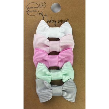 5 pack gift set of beautiful coloured hair bows. A traditional tuxedo baby bow is a slightly bigger version of the Baby Wisp® Mini. This little infant hair bow is about 4cm in diameter and 2.5cm tall and tied in grosgrain ribbon only.