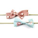 This 2 pack offers stylish patterns and colours to mix up your baby accessory collection. Either of these baby headbands look great with baby jeans or a solid colour dress! There are two headbands for infants in this pack. Both are attached to a nude / brown colour nylon elastic band that is soft on baby girl's head and does not leave marks. Just what you need for delicate infant heads and those that don't want to fiddle with clips. Easy to slip on.