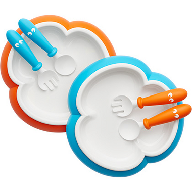 Like the size of the plates and utensils, easy for baby to hold, but wish the plates were more grippy, easy to slide around on tray and for baby to pick up