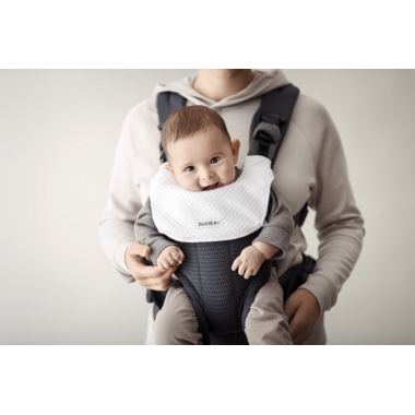 Soft bib that protects your baby carrier and keeps it clean so you won’t need to wash it as frequently. The absorbent bib has a waterproof membrane that acts as a moisture barrier and keeps your baby carrier dry. The bib’s soft Tencel surface feels smooth against your baby’s mouth and cheeks, and it is safe to taste. Simply snap the bib into place on your baby carrier.