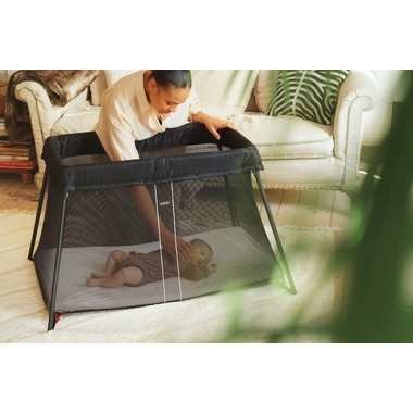 Easy set-up and fold up, the super lightweight Baby Bjorn Play Yard Lite is perfect for home and travel. Just open the bag, lift out the play yard and set it up in one simple movement. There are no loose parts to attach. The legs unfold automatically and once you have put the mattress in you have a stable play yard to use at home or on trips. When you are not using it, simply fold it up and store it in the practical bag.