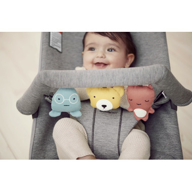 A cute and fun toy with a bell that your baby will love! It’s fascinating for your baby to look at the adorable friends, who jiggle when the baby bouncer rocks. The toy is made of soft cotton and 3D Jersey – BabyBjorn very softest fabric that feels extra gentle against a baby’s delicate skin. Playing also helps your baby to discover physical capabilities and develop motor skills. The toy bar is easy for an adult to attach and remove and fits both Bouncer Balance Soft and Bouncer Bliss.