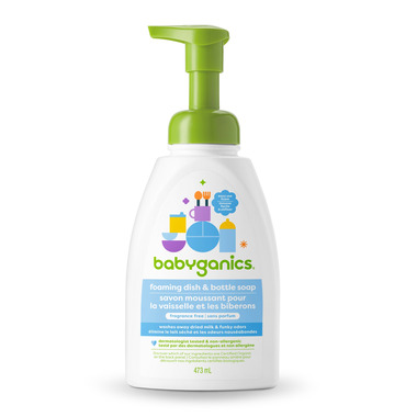 How does such a small baby create such a mound of dirty dishes? One of the eternal questions you ask as you stand at your sink. At least you won't question how to get squeaky clean sippy cups and bottles with no scary chemical or gel residue. babyganics' innovative, foaming technology with dual cleaning agents saves time, needs less water for washing and rinses free. Whether it's baby, family or dinner party dishes (remember dinner parties?), this is the answer to one of your burning questions.