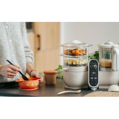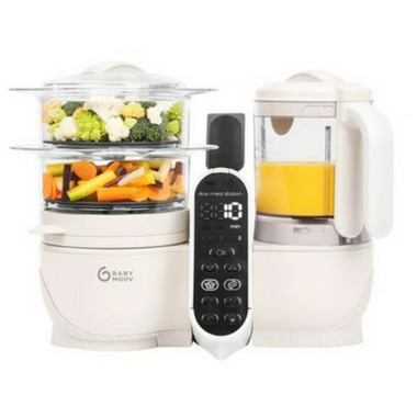 The Duo Meal Station multi-purpose food processor is ideal for all stages of your child's development, from bottle-feeding to weaning and beyond. This multi-purpose food processor features 6 automatic programmes, with 1 button = 1 function: steam cooking, blending, defrosting, heating baby food jars, sterilising and heating baby bottles. This food processor also features a central touchscreen console and a built-in timer (audible and visual alarm, automatic cut-off) making it really easy to use. Its 2 separate baskets guarantee food is steam-cooked to a turn, with all its flavours and vitamins preserved. Its 3 blending speeds along with its cooking water vessel mean you can adjust the texture as you wish, depending on your baby's age. With its 77oz capacity (53oz for cooking and 24oz for blending), you can prepare several meals in a single cycle!