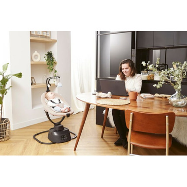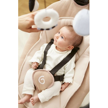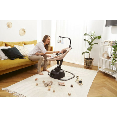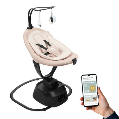 The first smart swing with customisable sounds to soothe baby. Control all the functions of your swing from your smartphone using the app! You can create your own audio recordings depending on your baby's favourite sounds, or ask friends and family to send theirs. When it comes to soothing your baby, nothing beats the sound of your gentle voice saying their name, a grandparent singing a lullaby or an uncle telling a story. What's more, you can stream your baby's favourite melodies from your usual music platform to the speaker on the swing. They also offer themed playlists (for when baby is asleep, playing, etc.) designed specifically by Babymoov and suitable for little ones everywhere. This ergonomic and intuitive app is easy to use. Use your phone to select your required swing movement, speed (5 choices), recorded sound or music, and instantly apply them to the swing. You can programme everything through the app, even the rocking duration. 10, 20 or 30 minutes the choice is yours! Their swing offers 8 different ultra-smooth swing movements designed to mimic the sensation of being in a parent's arms. Its 360ְ rotating seat system means your baby can join in with family life without the need to move the swing. It has 5 seating positions which are adjustable with one hand, meaning your baby can sit up or lie down comfortably throughout the day depending on whether they are sleeping, playing, etc. Its 5-point harness means your baby is completely safe. Their smart swing is extremely comfortable with its soft fabrics, and includes a newborn insert to create a gentle, reassuring cocoon for your baby. The detachable play arch can be adjusted to several positions, and is designed to stimulate your baby's curiosity as they play with the 3 sensory early learning toys (crinkly paper, bell and mirror).