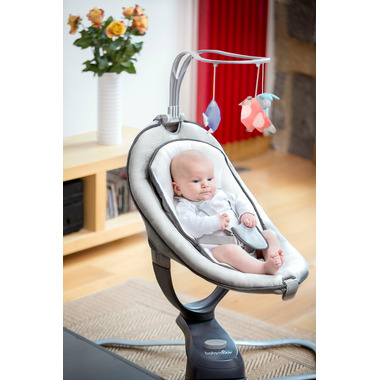 Thanks motion detector, the swinging movement starts if the baby starts to cry. You can also select swing time during 10, 20 or 30 minutes.