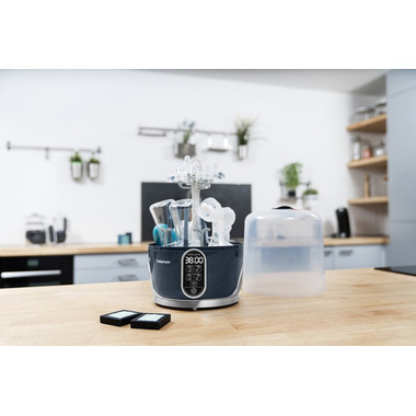 Storage within a hygienic environment: your baby bottles and accessories can be stored within the hygienic environment of the turbo pure for 24 hours (no risk of humidity or external pollutants). the LCD screen with tactile buttons is very intuitive. The 'all-in-one' Allows you to run The complete cycle in just 38 minutes. The turbo pure guarantees your baby bottles are completely hygienic in an ultra-purified environment!