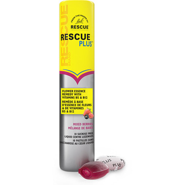 RESCUE PLUS® Lozenge combines Pantothenic acid, better known as Vitamin B5 and Vitamin B12, with the RESCUE® essences in a soothing lozenge with a natural orange and elderflower liquid centre. This combination of B vitamins has been specifically selected to support your daily performance even on busy days. Pantothenic acid (B5) helps support normal mental performance & Vitamin B12 helps maintain normal psychological function. This combination of B vitamins has been specifically selected to support your daily performance even on busy days.