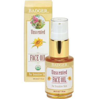 Badger Unscented Face Oil is a gentle, certified organic blend of precious plant oils formulated to help your skin retain its natural moisture without causing irritation. Vitamin E rich Sunflower Oil and soothing CO2 Extract of Calendula replenish lost moisture while calming sensitive areas.  Clinically tested hypoallergenic and non-comedogenic.