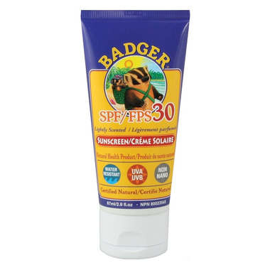 Badger proudly presents their wildly popular natural SPF30 sunscreen rated highest for safety and efficacy by the Environmental Working Group! Badger sunscreens are naturally water resistant, safe for children of all ages, block both UVA and UVB rays, and thoroughly moisturize while they protect your skin. This natural, physical barrier sunscreen uses zinc oxide instead of chemicals to protect you from the sun. Since the inception of this steamy, dreamy potion, previously sun-shy Badgers have been sighted belly up on the most luxurious beaches around the world. Meet you at the beach!