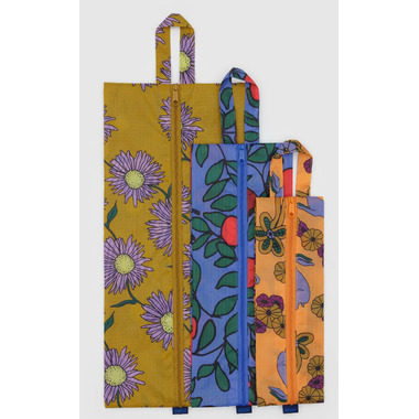 Perfect for packing, organizing your bag, or home tidying. Three piece set contains one Large, one Medium, and one Small 3D Zip. Loop allows for in-hand carrying or hanging.