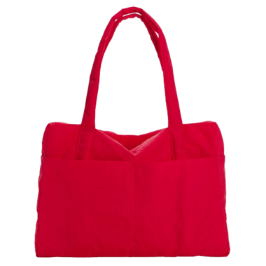 BAGGU's Cloud Carry-On is the bag to help you float away for a weekend and maybe then some. It fits everything you need for a weekend away, happily rides on your roll-aboard, stuffs easily into an overhead bin. Take it on a trip, or let it take you on one.